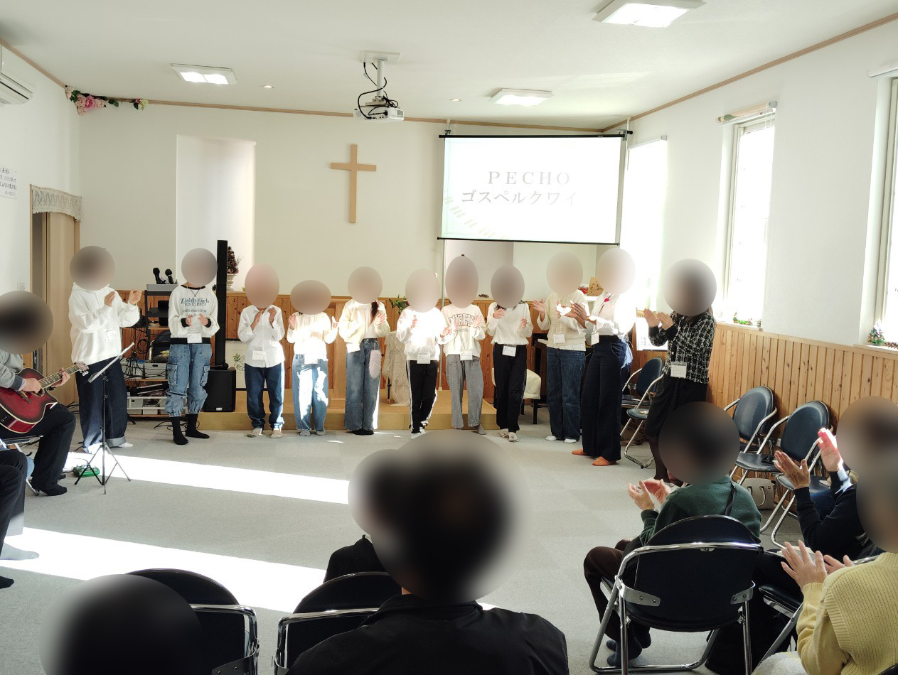 今日は教会で、クリスマスお楽しみ会が行われました。アドベントに入りましたが、教会の若者が中心となって企画準備を進めて、この日を迎えました。今回は、4月に結成されたPECOH(ペコ)ゴスペルクワイアのメンバー(小学生と中学生)がチャイルド・チャーチで特別賛美をして下さいました。(チームで初めてのことです。)クリスマスの曲と元気が出る賛美の曲が、透き通る声で歌われました。(これから、いろんな所で活動できたら良いですね。)